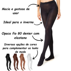 kit 2 Meia-calça opaca fio 80 denier com elastano.